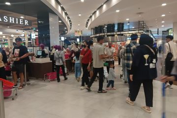 (Beritadaerah-Jakarta) Tampak keramaian pengunjung AEON Mall Jakarta Garden City, Jakarta Timur, Minggu (12/4) sore. Pengunjung AEON Mall JGC saat hari...