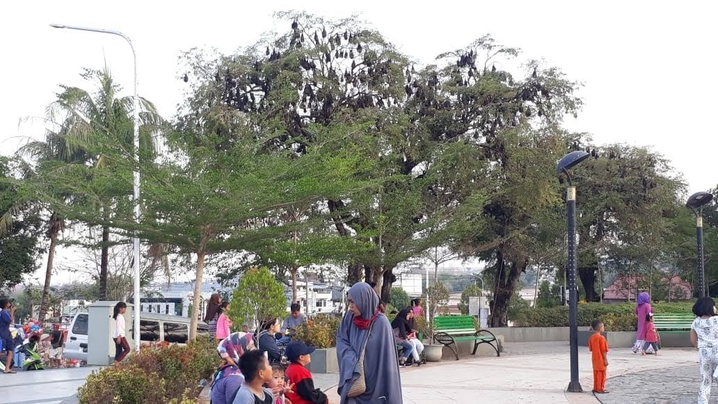 (Beritadaerah – Sulawesi Selatan) Apakah itu yang hitam-hitam menempel di pepohonan? Itu bukan buah atau daun tapi binatang. Ya, itu adalah sekumpulan kalong atau kelelawar yang bertengger di pohon di Taman Kalong yang berada di Watansoppeng, kota Soppeng, Sulawesi Selatan.