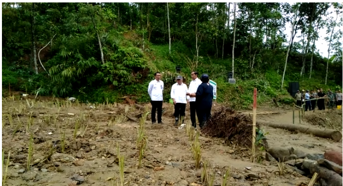 Usai kunjungan ke desa Harkat Jaya, Presiden Jokowi melakukan peninjauan ke lokasi yang sedang direhabilitasi oleh Kementerian Lingkungan Hidup dan Kehutanan (LHK) dengan pemasangan tanggul penahan sedimen. Tanggul dibuat dari bronjong, yaitu susunan batu-batu yang dibungkus dengan anyaman kawat.