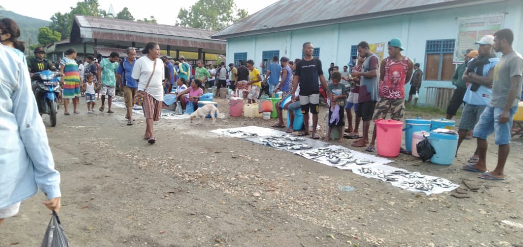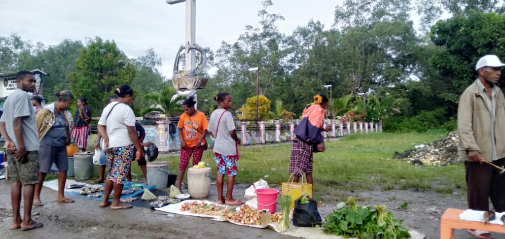 (Beritadaerah – Nasional) Pemerintah pada masa pandemi Covid-19 tetap mengarahkan agar pasar rakyat atau pasar tradisional tetap beroperasi. Ini adalah kondisi pasar Menawi yang berada di distrik Angkaisera, Kepulauan Yapen, Serui, Papua. Tepatnya pasar ini berlokasi di jalan Perapatan, Kainui Konti, Angkaisera.