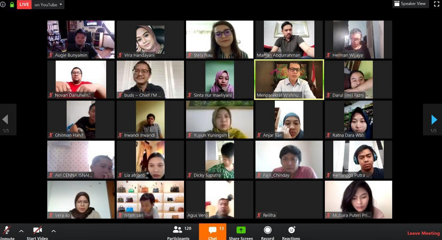 (Beritadaerah – Jakarta) Menghadapi perubahan perilaku manusia (new normal) termasuk perubahan perilaku berwisata, Menteri Pariwisata dan Ekonomi Kreatif (Menparekraf) Wishnutama Kusubandio mengajak anak muda generasi Z dan milenial untuk tetap optimistis. Hal tersebut disampaikan oleh Menparekraf saat konferensi virtual I’M Milenial dan Generasi Z dengan tema “Tantangan, Harapan dan Masa Depan New Normal”, Minggu (10/5). Virtual meeting yang dihadiri lebih dari 100 peserta tersebut dipandu Stella Nau dan juga menghadirkan Anggota DPR RI Komisi VII Maman Abdurrahman dan Chief Executive I’M Gen Z Budi Setiawan.
