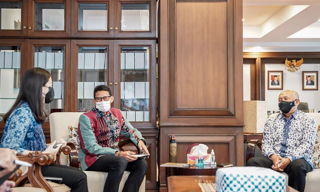 (Beritadaerah – Jakarta) Setelah melakukan koordinasi dengan Kementerian Komunikasi dan Informatika membahas lima kawasan destinasi super prioritas (DSP), maka Kementerian Pariwisata dan Ekonomi Kreatif/Badan Pariwisata dan Ekonomi Kreatif melakukan sinergi dengan Kementerian Koperasi dan UKM. Upaya ini dilakukan untuk memulihkan usaha pelaku pariwisata dan ekonomi kreatif terutama yang berada di 5 DSP dan daerah-daerah wisata lainnya di Indonesia.