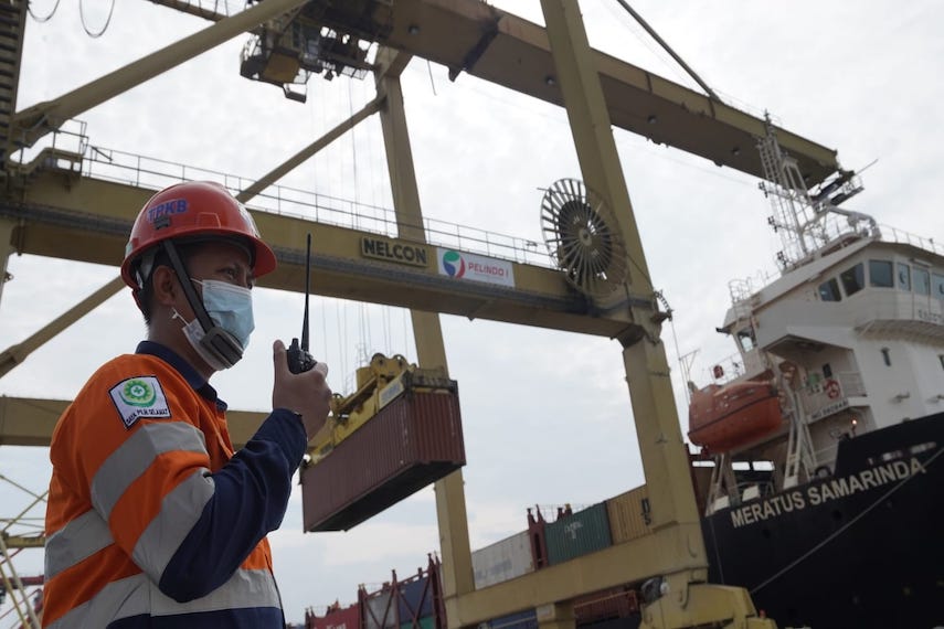 (Beritadaerah – Belawan) Kegiatan ekspor impor perdana MV Meratus Samarinda ke Port Klang, Malaysia dilakukan dari Terminal Peti Kemas (TPK) Belawan yang dikelola oleh Pelindo 1 pada Kamis, (30/9). MV Meratus Samarinda mengangkut 372 TEUs (twenty-foot equivalent unit).