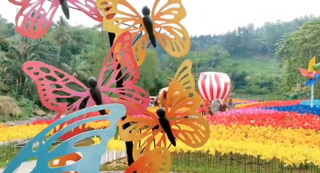Wahana yang baru di buka Dairyland Puncak, dimana pengunjung dapat spot foto selfie dengan puluhan ribuan kincir angin yang berwarna-warni yakni De Windmills.