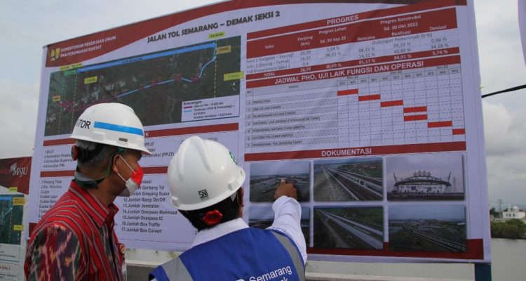 (Beritadaerah – Demak) Gubernur Ganjar Pranowo melakukan kunjungan guna melihat progress pembangunan Tol Semarang-Demak Seksi 2 di Demak, Jawa Tengah, Selasa (8/11). Diperkirakan jalan tol ini dapat diakses untuk umum pada momen Natal dan Tahun Baru. Secara umum, ruas tol sepanjang 16,31 kilometer itu sudah selesai dan menyisakan detail-detail seperti rambu-rambu serta pintu keluar tol.