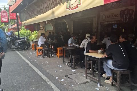 (Beritadaerah – Bandung) Seorang penjual tahu gejrot di jalan Cibadak, Bandung, Jawa Barat, Rabu (23/8). Tampak penjual sedang menuang bumbu kuah ke tahu yang sudah siap dihidangkan. Kawasan Cibadak dikenal sebagai pusat jajanan malam kuliner di Bandung.