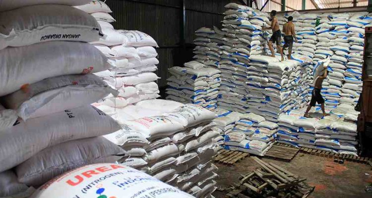 (Beritadaerah – Medan) Sejumlah pekerja melakukan bongkar muat pupuk subsidi di gudang penyimpanan pupuk Distribution Center (DC), Medan, Sumatera Utara, Kamis (22/2/2024). Stok pupuk bersubsidi milik PT Pupuk Indonesia (Persero) di gudang tersebut sebanyak 40.053 ton pupuk urea dan 10.656 ton pupuk NPK untuk memenuhi kebutuhan petani selama masa tanam tahun 2024.