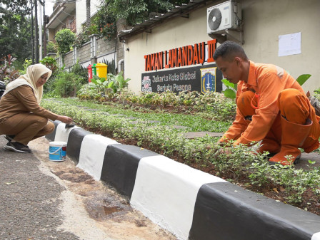 (Beritadaerah-Jakarta) Tampak Petugas dari Suku Dinas Pertamanan dan Hutan Kota Jakarta Selatan dan Penanganan Prasarana dan Sarana Umum (PPSU) sedang pengerjaan penataan kawasan di Jalan Lamandau III, Kota Jakarta Selatan. Sebelumnya jalan ini merupakan tempat parkir liar dan pedagang kaki lima liar, sehingga membuat kawasan terlihat semrawut. Sekarang telah menjadi taman minimalis yang ramah lingkungan.