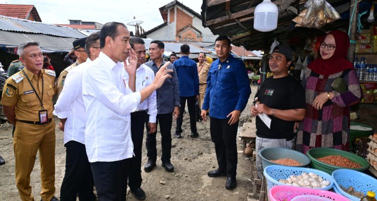 Presiden Jokowi dan Ibu Iriana kemudian berkeliling pasar tersebut dan berdialog langsung dengan para pedagang untuk mengecek harga bahan pokok. Zubaidah, salah seorang pedagang sembako, mengatakan bahwa Presiden Jokowi sempat bertanya harga sejumlah bahan pokok di pasar tersebut.