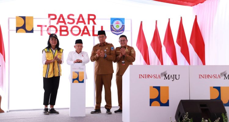 (Beritadaerah-Bangka Selatan) Wakil Presiden (Wapres) Ma’ruf Amin meresmikan Pasar Toboali di Kabupaten Bangka Selatan, Provinsi Kepulauan Bangka Belitung (Babel) pada Selasa (10/9). Turut hadir bersama Wapres dalam peresmian pasar yakni Penjabat (Pj) Gubernur Bangka Belitung Sugito, Kepala Badan Pengembangan Infrastruktur Wilayah (BPIW) Yudha Mediawan, Direktur Bina Teknik Jalan dan Jembatan Yudha Handita Pandjiriawan, Kepala Balai Wilayah Sungai (BWS) Babel Susi Hariany, Kepala Balai Pelaksanaan Jalan Nasional (BPJN) Babel Arief Syarif Hidayat, dan Kepala Balai Penyediaan Permukiman Wilayah (BPPW) Babel Yenni Mulyadi.