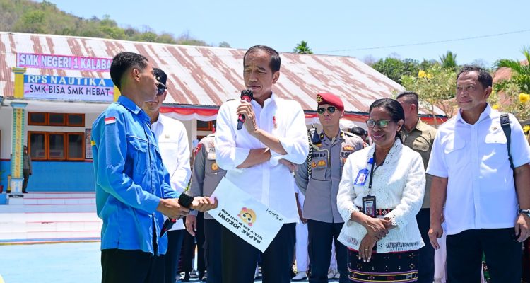 (Beritadaerah-Alor) Dalam kunjungan kerjanya beberapa hari di Provinsi Nusa Tenggara Timur, Presiden Joko Widodo mengunjungi SMK Negeri 1 Kalabahi, Kabupaten Alor, pada Kamis, 3 Oktober 2024. Dalam kunjungan tersebut, Kepala Negara meninjau sejumlah ruang kelas dan fasilitas praktek yang dimiliki sekolah. Turut serta mendampingi Presiden Jokowi dalam kunjungan yakni Menteri Dalam Negeri Tito Karnavian, Pj Gubernur NTT Andriko Noto Susanto, dan Pj Bupati Alor Zet Sony Libing.