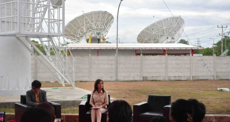 (Beritadaerah-Kupang) Sejumlah anggota kepolisian berjaga sebelum acara kunjungan Menteri Komunikasi dan Digital (Menkomdigi), Meutya Hafid di Stasiun Bumi SATRIA-1, Desa Bolok, Kecamatan Kupang Barat, Provinsi Nusa Tenggara Timur, Rabu (30/10).