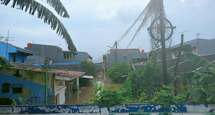 (Beritadaerah-Bekasi) Kondisi banjir yang terjadi di perumahan Bekasi Jaya dan Kampung Crewed, Bekasi Timur, Jawa Barat, Selasa pagi (4/3). Banjir mengenangi puluhan rumah warga dan tampak rumah warga yang terendam air.