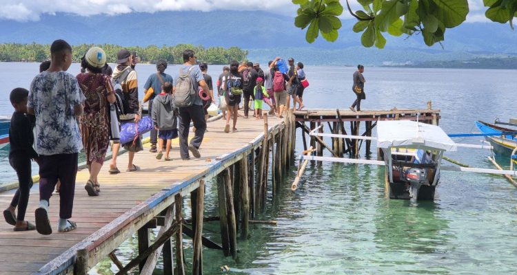 (Beritadaerah-Manokwari) Sejumlah warga menuju ke perahu yang hendak berlibur ke Pulau Mansiman, Manokwari, Papua Barat, Senin (31/3), melalui Halte Ketapang. Halte ini merupakan salah satu tempat penyeberangan untuk menuju Pulau Mansinam dengan menggunakan perahu kayu bermotor bermuatan sekitar 10-12 orang. Lokasinya berada di Jalan Pasir Putih.