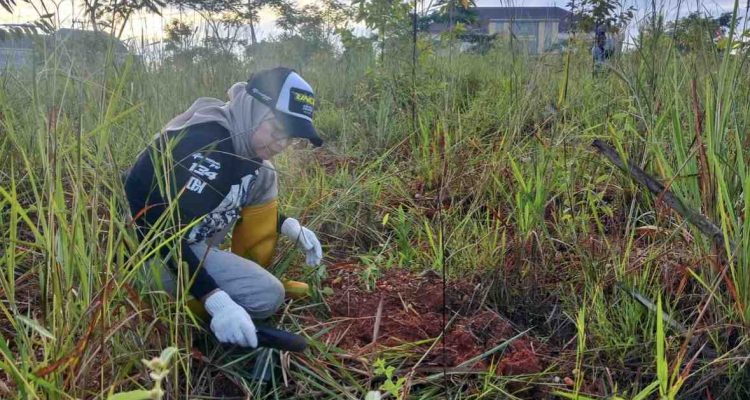 (Beritadaerah-Banjarbaru) Dalam upaya menjaga kelestarian hutan, Kepala Dinas Kehutanan Kalsel Fathimatuzzahra menanam bibit eucalyptus di area bundaran Forest City, Kawasan Perkantoran Gubernur, Banjarbaru, Kalimantan Selatan, Jumat (18/4). Selain menjaga kelestarian hutan, penanaman ini juga memperkuat ekosistem hijau, serta memperindah kawasan perkantoran agar lebih asri dan sejuk.