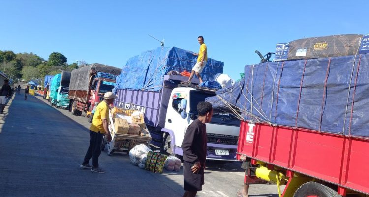 Antrian Truk Barang di Pelabuhan Bolok, Kupang Handi Denyut Sabang MeraukeFeatured August 10, 2025 (Beritadaerah-Kupang) Antrian truk yang mengangkut barang sedang bersiap masuk ke kapal di Pelabuhan Bolok, Kota Kupang, NTT, Minggu siang (10/8). Foto: Riris/Journalist BD
