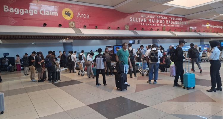 Penumpang Menunggu Bagasi di Bandara Sultan Mahmud Badaruddin II Handi Denyut Sabang MeraukeFeatured August 11, 2025 (Beritadaerah-Palembang) Para penumpang menunggu bagasi di Terminal Kedatangan, Bandara Sultan Mahmud Badaruddin II International, Kota Palembang, Sumatera Selatan, Senin (11/8). Foto: Hanung/Kontributor BD