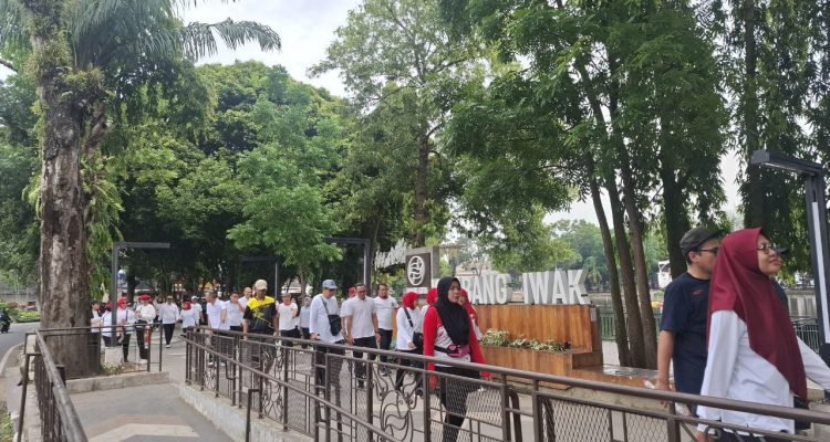 (Beritadaerah-Palembang) Tampak warga jalan santai dan berolahraga di Taman Kambang Iwak, Kota Palembang, Sumatera Selatan, Rabu pagi (13/8). Taman Kambang Iwak merupakan taman kota bersejarah dengan danau buatan, lintasan jogging, dan ruang komunitas yang asri.