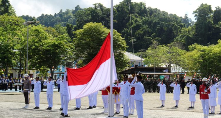 (Beritadaerah-Raja Ampat) Upacara Peringatan Hari Ulang Tahun Ke-80 Republik Indonesia di Lapangan Apel Kantor Pemerintah Daerah Kabupaten Raja Ampat, Provinsi Papua Barat Daya, Minggu pagi (17/8). Upacara dipimpin langsung oleh Bupati Kabupaten Raja Ampat Orideko I Burdam, S.IP.,MM.,M.Ec. Dev. selaku Inspektur Upacara.