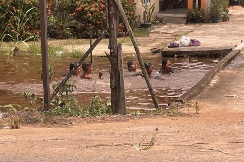 “Dari jam 8, tadi lihat ada pesawat, setelah upacara tadi ada pesawat yang bagus banget pokoknya. Terus muter-muter, anak-anak main perosotan, makasih juga sih ada makanan gratis. Top banget pokoknya,” ujar Ibu Ade dengan wajah sumringah.
