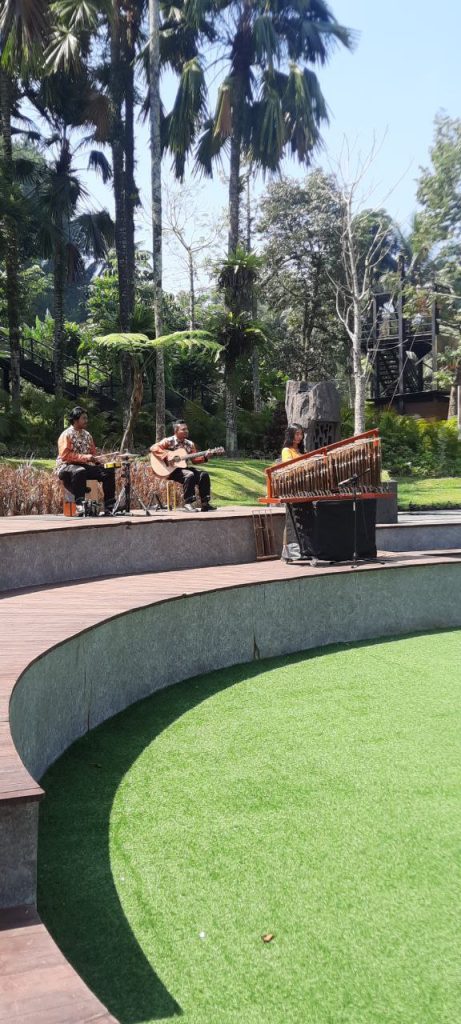 Pertunjukan berlangsung di tepi air terjun, langit yang biru dan pepohonan yang indah menambah nuansa alami yang membuat momen ini terasa sangat spesial. Tidak terasa waktu terus berjalan dan pertunjukan angklung sudah berakhir, rasanya masih ingin terus bermain angklung di tengah alam indah ini. Pengalaman yang mengesankan untuk mengisi waktu liburan bersama dengan keluarga dan rekan.