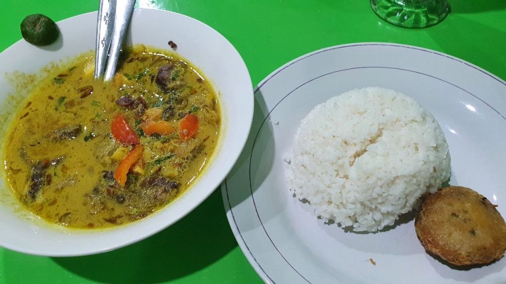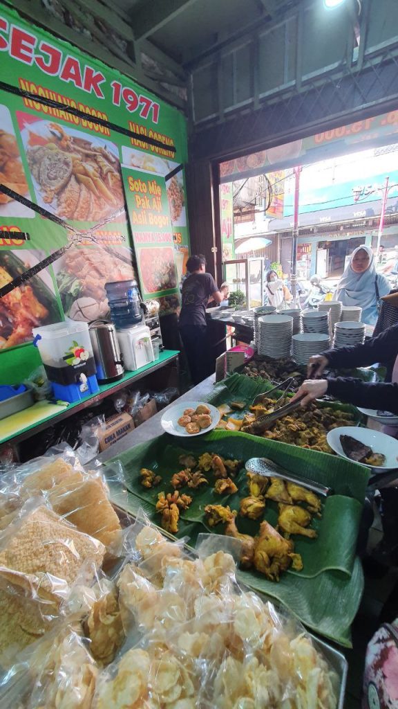 Soto kuning khas Bogor sendiri adalah salah satu kuliner legendaris dari kota hujan yang terkenal dengan kuah santan berwarna kuning, gurih, dan kaya rempah. Warna kuning berasal dari kunyit, dengan santan yang membuat kuahnya sangat creamy dan gurih. Hidangan ini biasanya berisi daging sapi, dan berbagai pilihan bagian dari sapi seperti babat, paru, usus, dan juga ada perkedel kentang; disajikan dengan tambahan potongan tomat, kentang goreng, emping, sambal, dan perasan jeruk nipis. Tersedia juga pilihan isian soto berupa ayam goreng sebagai alternatif bagi pengunjung.
