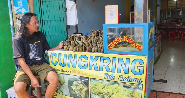 (Beritadaerah-Bogor) Pedagang Cungkring di Jalan Surya Kencana, Bogor, Jawa Barat, Jumat (26/3). Kuliner ini viral dan paling dicari pengunjung kawasan Surya Kencana. Cungkring Pak Jumat, lokasinya tepatnya berada dekat dengan perempatan Gang Aut, Jalan Surya Kencana. Harga satu porsi cungkring dihargai Rp20.000 dan harga yang terbilang ramah di kantong serta porsinya cukup mengenyangkan.