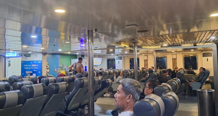 (Beritadaerah-Merak) Suasana Kapal Ferry Express yang membawa penumpang dengan rute dari Pelabuhan Bakauheni, Kabupaten Lampung Selatan menuju Pelabuhan Merak, Banten, pada hari Minggu, tanggal 28 September 2024 pukul 21.58 WIB.