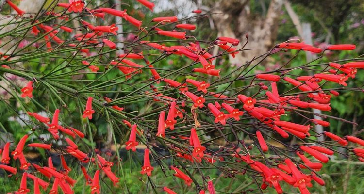 (Beritadaerah-Jawa Barat) Bunga Air Mancur ini sering disebut juga tanaman petasan. Tanaman hias ini memiliki bentuk unik dan menawan, menyerupai semburan air mancur yang menjulang dari pusat tanaman. Kombinasi daun hijau lembut dan bunga merah cerah menjadikan bunga air mancur sangat unik dan menarik dipandang. Gambar ini diambil di kawasan Puncak, Jawa Barat (09/10).