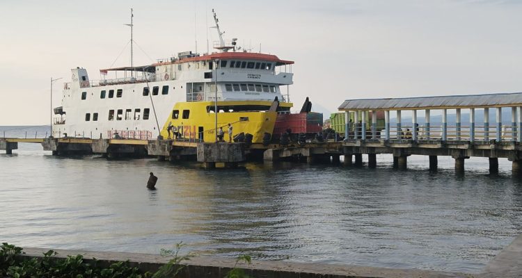 (Beritadaerah-Sofifi) KMP. Gorango yang sedang berlabuh di Pelabuhan Penyeberangan Ferry Sofifi, Maluku Utara. Tampak kesibukan pelabuhan terjadi pada sore hari ini, Jumat, 17 Oktober 2025, dimana truk, mobil dan motor serta penumpang yang akan memasuki kapal untuk menyeberang ke Ternate.