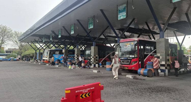 (Beritadaerah-Sidorajo) Beberapa bus sedang menunggu penumpang dan suasana di dalam Terminal Purabaya, Kabupaten Sidoarjo, Jawa Timur, Senin siang (3/11). Terminal Bus Purabaya, yang juga dikenal sebagai Terminal Bungurasih.