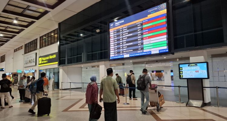 Papan Jadwal Keberangkatan Pesawat di Bandara Juanda, Jatim Handi Denyut Sabang MeraukeFeatured November 3, 2025 (Beritadaerah-Sidoarjo) Papan jadwal penerbangan di Terminal Keberangkatan, Bandara Juanda, Kabupaten Sidoarjo, Jawa Timur, Senin malam (3/11). Foto: Hanung/Kontributor BD