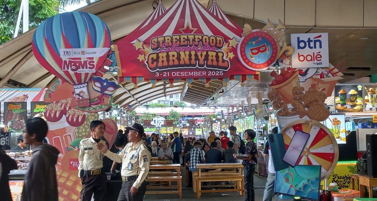 (Beritadaerah-Jakarta) Pengunjung yang sedang menikmati kuliner di Street Food Carnival, Blok M Square, Jakarta Selatan, Selasa (16/12). Acara ini berlangsung dari 3-21 Desember 2025 di Teras Berlian 1-3, dengan menawarkan puluhan tenant makanan viral seperti Long Potato, Ramen, Burger, Rujak, dan banyak lagi, dengan promo hadiah menarik seperti TV atau tabungan.