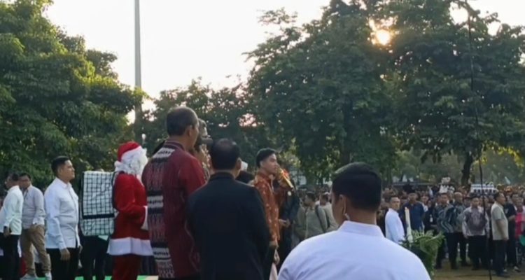 (Beritadaerah-Salatiga) Wakil Presiden Gibran Rakabuming Raka menyapa ribuan umat Kristiani di Lapangan Pancasila, Salatiga, Jawa Tengah, yang tengah merayakan Natal pada Kamis, 25 Desember 2025. Tidak hanya menyapa jemaat, Wapres Gibran juga membagikan ratusan kado Natal untuk para umat Kristiani.