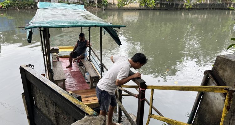 (Beritadaerah-Jakarta) Tampak perahu getek di Kali Pasar Ular Plumpang, Jakarta Utara. Perahu getek sebagai alat transportasi penyeberangan tradisional. Banyak warga yang menggunakan perahu getek ini agar tidak memutar jauh. Setiap penumpang cukup membayar 2000 rupiah untuk sekali penyeberangan.
