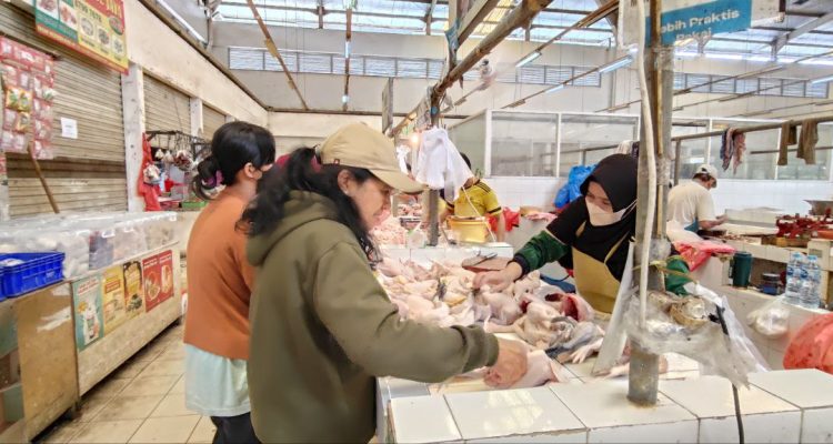 (Beritadaerah-Jakarta) Tampak pedagang ayam potong melayani pengunjung yang berbelanja di Pasar Modern Market Jakarta Garden City, Jakarta Timur, Kamis (29/1) pagi. Berbagai bahan kebutuhan pokok, sayuran, buah-buahan, daging, telor dan lainnya tersedia di pasar ini. Hasil pantauan di lapangan untuk harga telor Rp 29 ribu per kg, ayam kampung Rp 75-80 ribu per ekor, ayam negeri Rp 50 ribu per ekor.