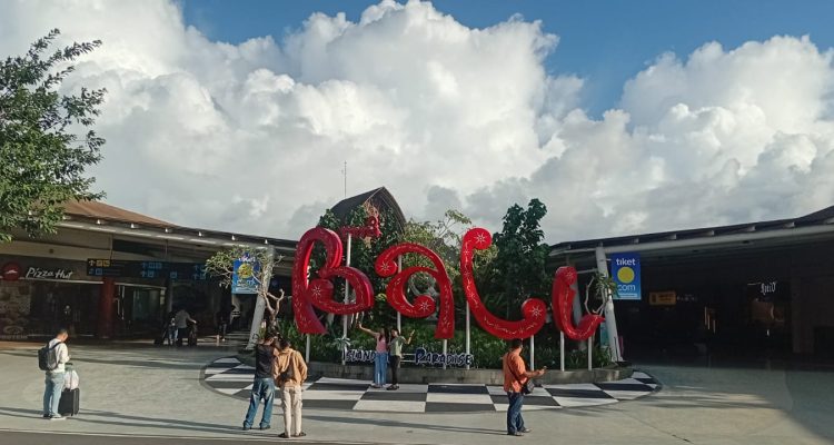 (Beritadaerah-Bali) Tampak para wisatawan yang baru tiba di Bandara I Gusti Ngurah Rai, Bali, Rabu (4/2) pagi, sedang berfoto di depan tulisan “Bali”. Tulisan ini berada di depan terminal kedatangan dan biasanya jadi obyek foto wisatawan.