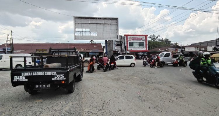 (Beritadaerah-Pekanbaru) Akibat jalan yang rusak terjadi kemacetan lalu lintas di Simpang Tiga, Kec. Bukit Raya, Kota Pekanbaru, Riau, Kamis (16/2) siang.