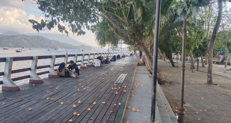 (Beritadaerah-Ternate) Tampak warga yang menikmati Taman Nukila pada sore hari di Kota Ternate, Maluku Utara, Sabtu (18/4). Taman Nakila terlihat bersih dan ramai dikunjungi warga untuk bermain dan menikmati suasana pantai dengan pemandangan pulau yang ada di sekitar Kota Ternate.