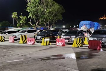 (Beritadaerah-Bandar Lampung) Antrian kendaraan mobil yang hendak masuk ke dalam kapal penyeberangan di Pelabuhan Bakauheni, Kabupaten Lampung Selatan, Lampung, pada...
