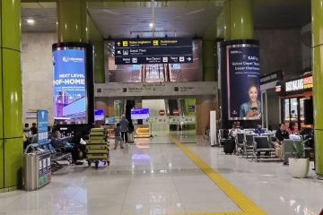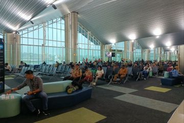(Beritadaerah-Manado) Tampak para penumpang sedang menunggu keberangkatan pesawat di Bandara Internasional Sam Ratulangi Manado, Sulawesi Utara, Selasa (18/11) pagi. Foto:...