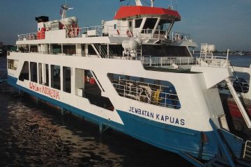 (Beritadaerah-Pontianak) Tampak kapal ferry penyebrangan Sungai Kapuas di Kota Pontianak, Kalimantan Barat, Rabu (31/7). Dalam sehari, Kapal Ferry penyebrangan sungai Kapuas mampu...