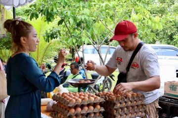 (Beritadaerah-Banjarbaru) Tampak seorang warga (kiri) membeli telur ayam ras pada kegiatan Gerakan Pangan Murah (GPM) di halaman kantor Dinas Pertanian...