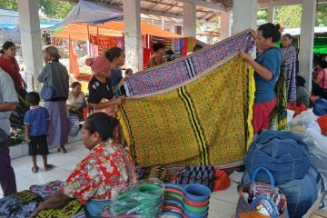 (Beritadaerah-Soe) Tampak ibu-ibu penjual kain tenun tradisional sedang melayani pembeli di Pasar Niki Niki, Kota Soe, Kabupaten Timor Tengah Selatan,...