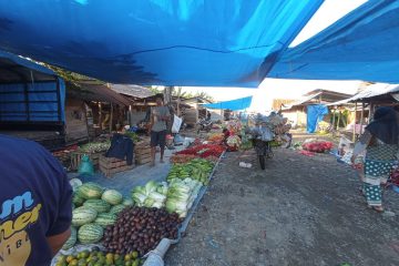 (Beritadaerah-Mamuju) Tampak lapak para pedagang sayur mayur, buah-buahan dan berbagai kebutuhan pokok di Pasar Tasiu, Kecamatan Kalukku, Kabupaten Mamuju, Sulawesi...