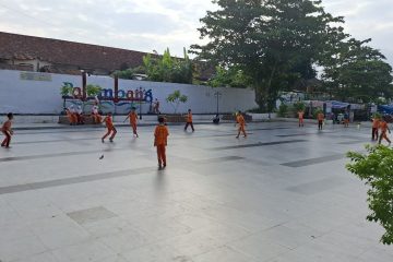 (Beritadaerah-Palembang) Aktivitas anak-anak sekolah dasar (SD) yang sedang berolahraga dan bermain bola di samping Benteng Kuto Besak, Palembang, Sumatera Selatan,...