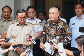 (Beritadaerah-Jakarta) Menteri Perhubungan Dudy Puwagandhi dengan Gubernur Jakarta Pramono Anung membahas pengembangan kawasan berorientasi transit (transit-oriented development / TOD) Dukuh...