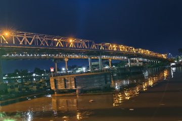 (Beritadaerah-Pontianak) Tampak cahaya dari lampu-lampu yang menghiasi Jembatan Kapuas 1 pada waktu malam di Kota Pontianak, Kalimantan Barat, Selasa (30/9)....