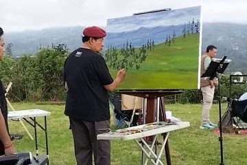 (Berita Daerah-Magelang) Presiden keenam RI, Susilo Bambang Yudhoyono (SBY) melukis bersama puluhan perupa asal Magelang dan Yogyakarta di Wonolelo Hill...