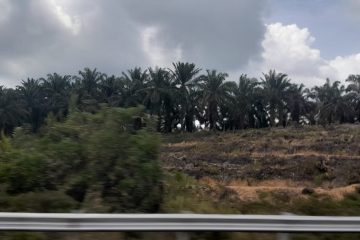 (Beritadaerah-Pekanbaru) Pemandangan sepanjang jalan Tol dari Pekanbaru menuju Dumai di Provinsi Riau, Rabu (3/12). Sepanjang jalan tol tampak perkebunan kelapa...
